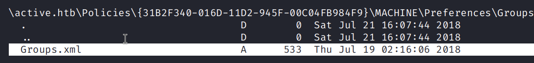 Found Pass : cpassword="edBSHOwhZLTjt/QS9FeIcJ83mjWA98gw9guKOhJOdcqh+ZGMeXOsQbCpZ3xUjTLfCuNH8pG5aSVYdYw/NglVmQ" User Name : active.htb\svctags